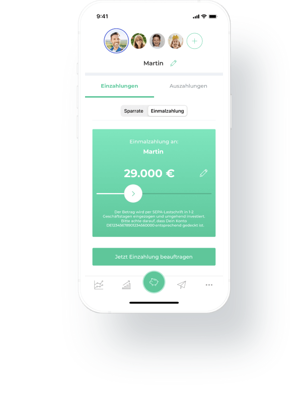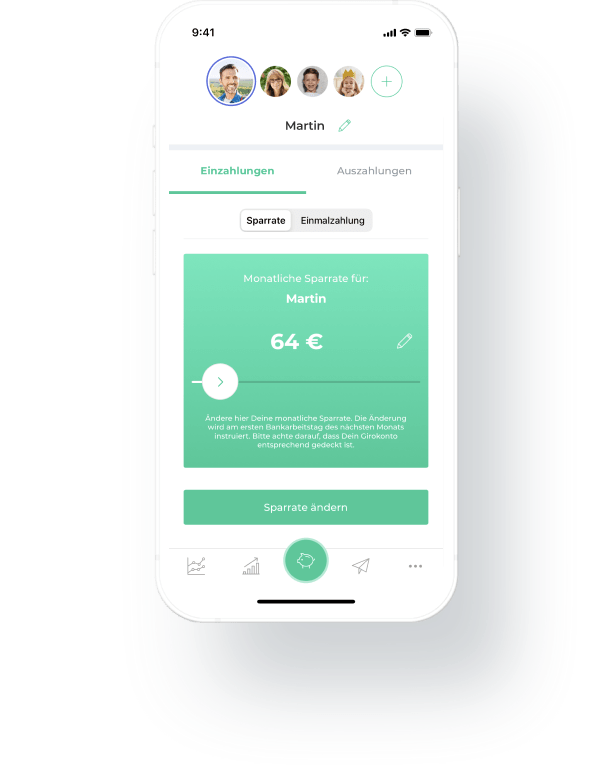 Mit einem Sparplan spart es sich am Besten. Ab 25€ im Monat hast Du die Möglichkeit, einen Sparplan anzulegen.