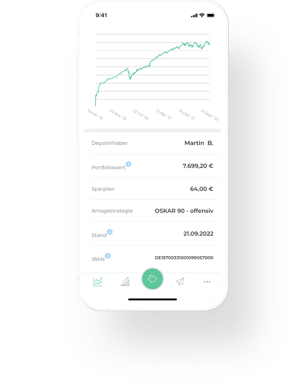 OSKAR ist eine digitale Vermögensverwaltung, die Dein Geld schon ab einem Sparbetrag von 25 Euro/Monat für Dich professionell anlegt. Jeder OSKAR Kunde bekommt ein Konto, auf das er Geld zum Anlegen einzahlen kann und ein Depot, in dem die ETFs liegen, die OSKAR für Dich kauft. Du partizipierst damit an der weltweiten Entwicklung der Wirtschaft und hast gleichzeitig eine Inflationsschutz-Komponente. Das alles ohne langfristige Verpflichtung – Du kommst jederzeit an Dein Geld und kannst ohne Frist und Kosten kündigen.